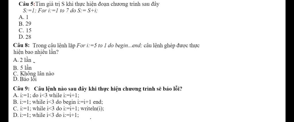vì giá trị đầu đã lớn hơn giá trị cuối nên câu lệnh lặp được bỏ qua và không thực hiện