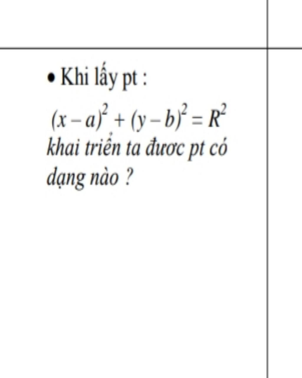 $\Leftrightarrow$ `x^2-2ax+a^2+y^2-2by+b^2-R^2=0`