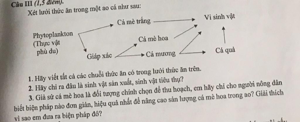 Sinh vật tiêu thụ: Cá mè hoa, cá mè tắng, cá mương, cá quả