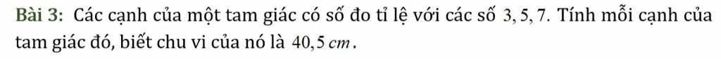 $\text{Do đó ta có mối liên hệ: $\frac{x}{3}$ = $\frac{y}{5}$ = $\frac{z}{7}$ và x + y + z = 40,5}$