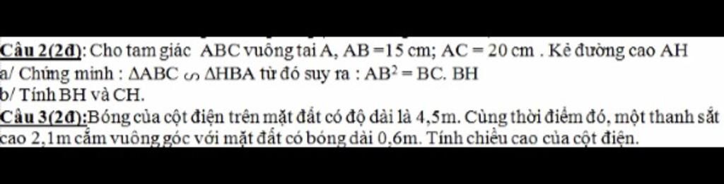 Vậy Chiều cao của cột điện là `17,85(m) `