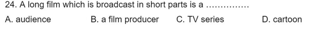 Tạm dịch : Một bộ phim dài được phát sóng thành nhiều phần ngắn là một bộ phim truyền hình dài tập.