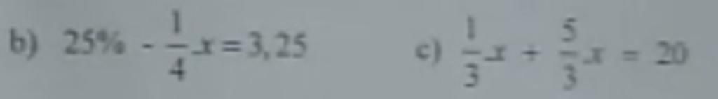 `b)` `25% - 1/4 x = 3,25`