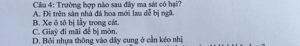 `-` Lực ma sát trong trường hợp này có hại vì lực ma sát làm mòn đế giày