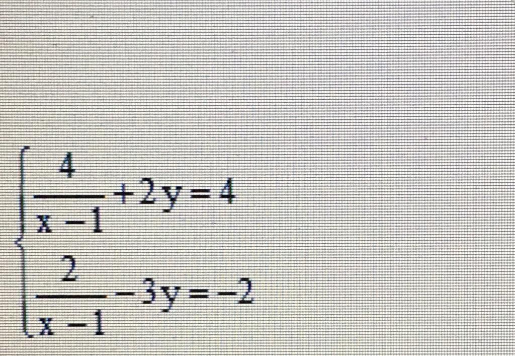 $\begin{cases} \dfrac{4}{x-1}+2y=4\\ \dfrac{2}{x-1}-3y=-2\end{cases}$