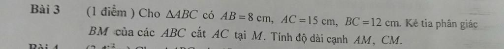 xét tam giác ABC có : BM là tia phân giác của góc ABC