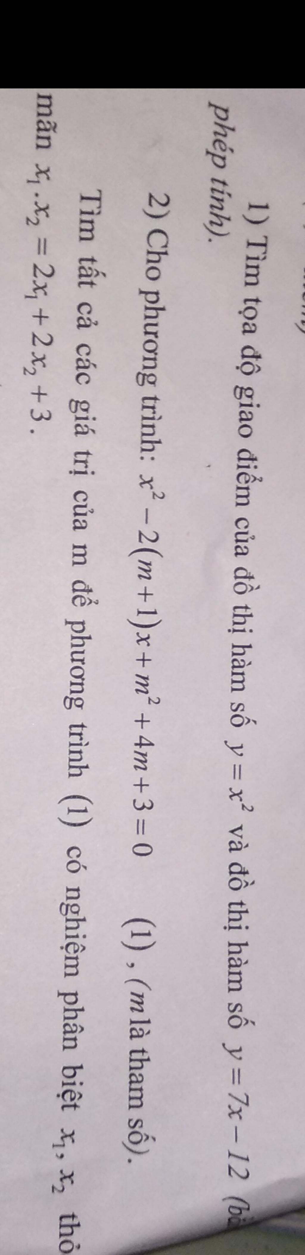1) Xét pt hoành độ giao điểm của chúng