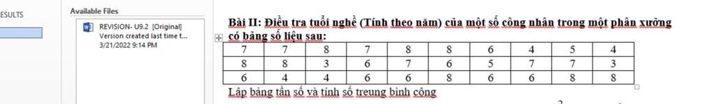 Bài II: Điều tra tuổi nghề (Tính theo năm) của một số công nhân trong một phân xưởng