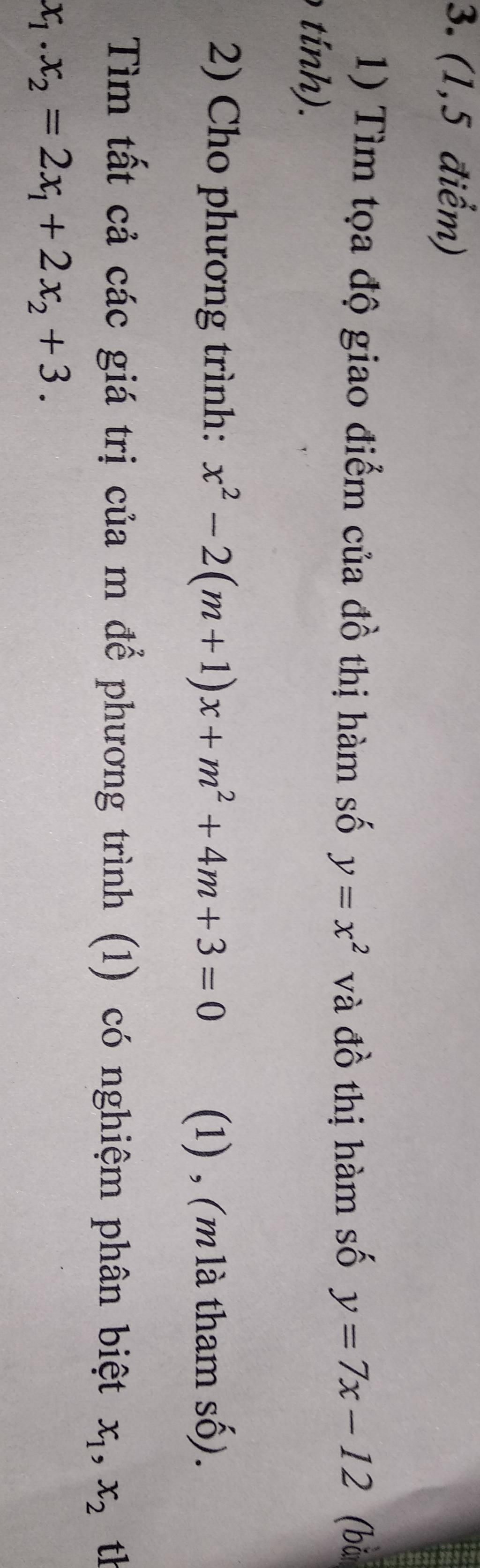 1) Xét pt hoành độ giao điểm của chúng