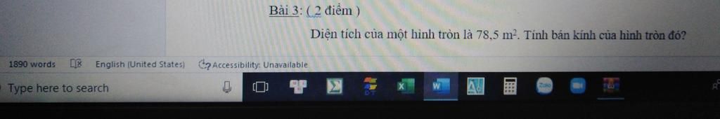 bán kính hình tròn là : 78,5:3,14= 25 (m)