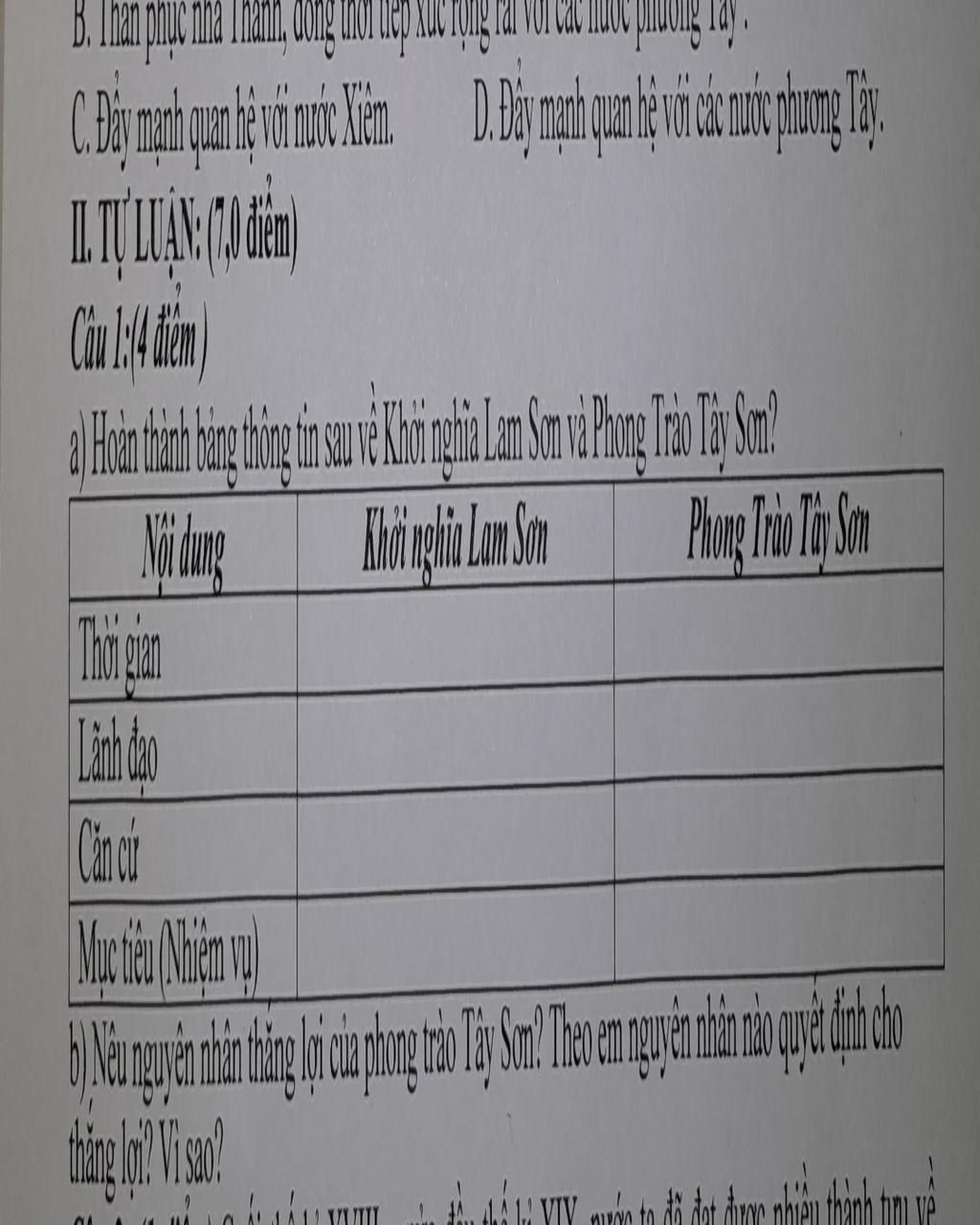 Nguyên nhân thắng lợi của phong trào Tây Sơn: