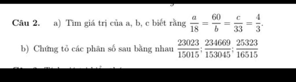 a) `a/{18}={60}/b=c/{33}=4/3`