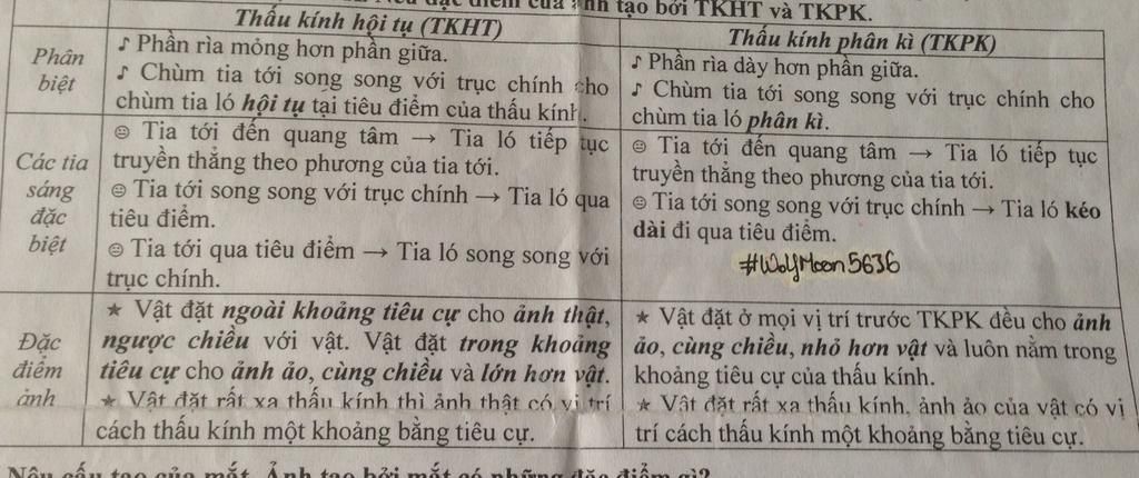 *Điểm giống nhau: có trục chính, quang tâm, tiêu điểm, tiêu cự.