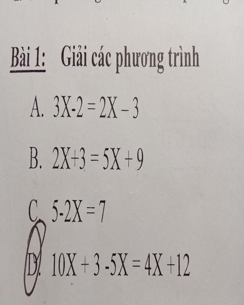 D) 10x + 3 -5x = 4x +12