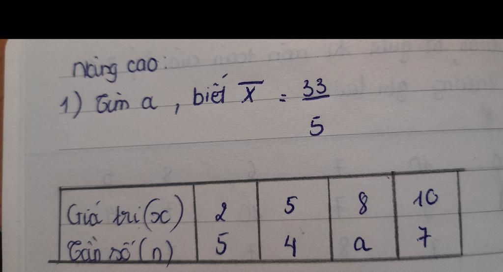 `\frac{2.5+5.4+8a+10.7}{5+4+a+7}=33/5`