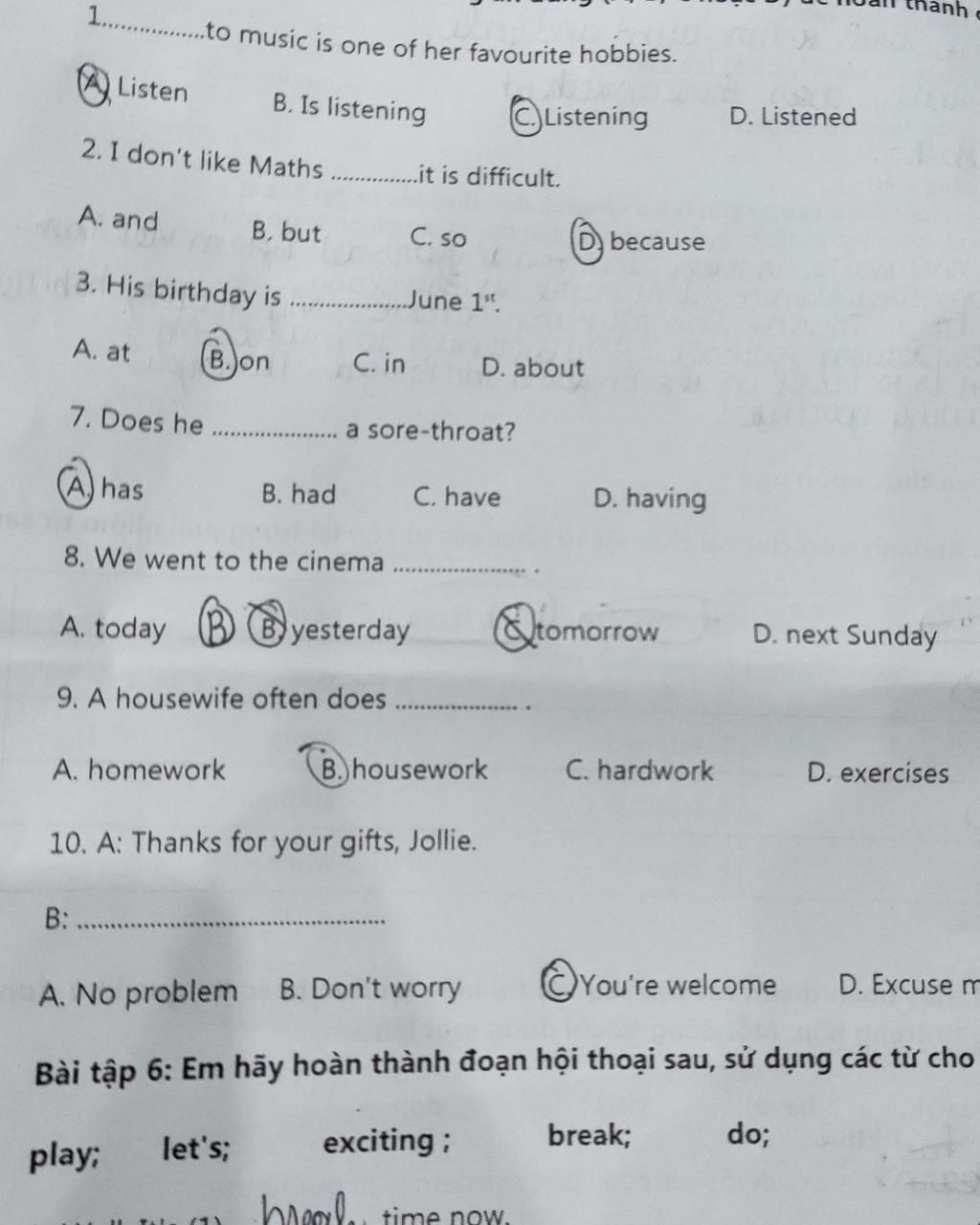 Ta đặt on trước những từ chỉ các ngày trong tuần hoặc một dịp nào đó