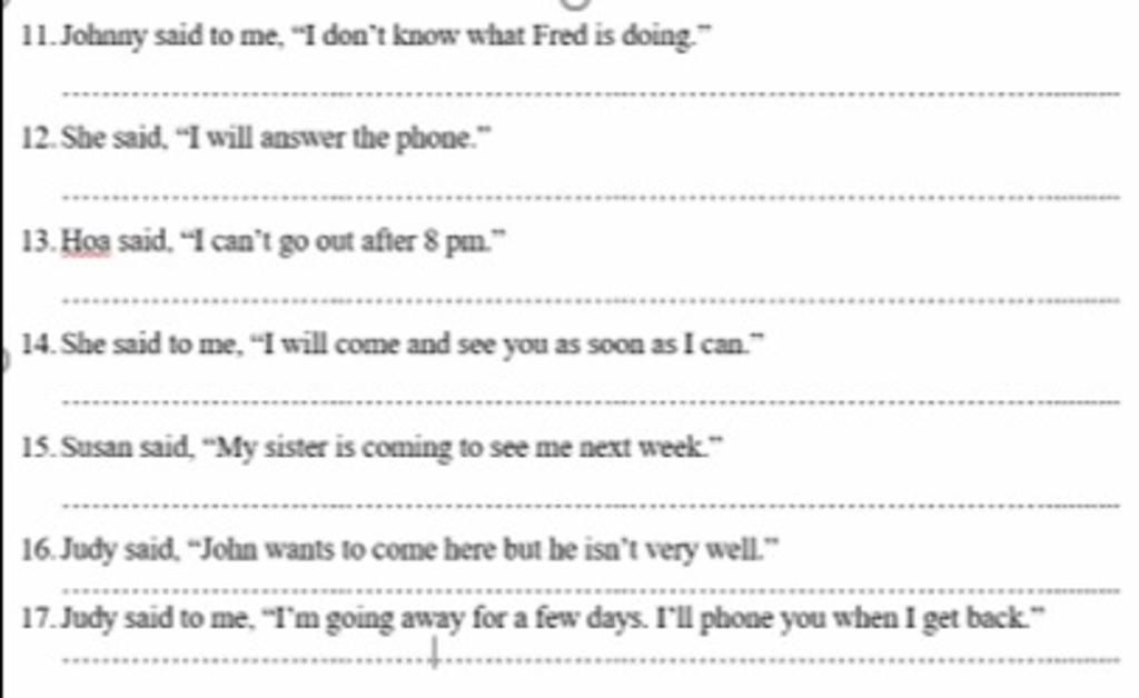 11. Johny said to me that he didn't know what Fred was doing.