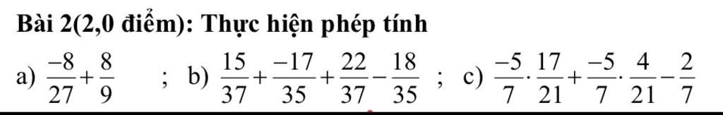 `c,` `-5/7 . 17/21 + 5/7 . 4/21 - 2/7`