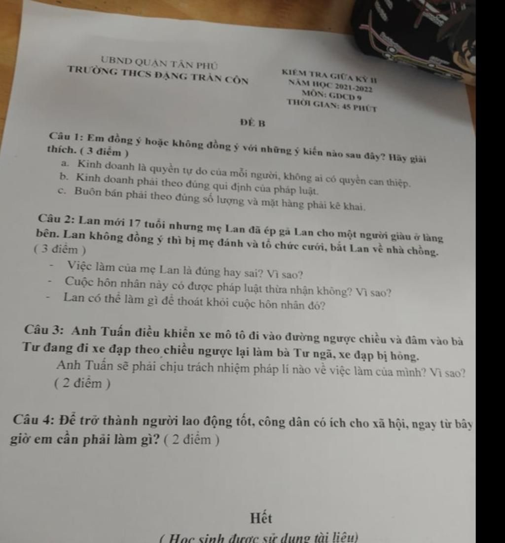 Câu 1: Em đồng ý hoặc không đồng ý với những ý kiến nào sau đây? Hãy giải
