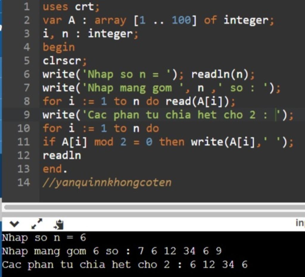 if A[i] mod 2 = 0 then write(A[i],' ');