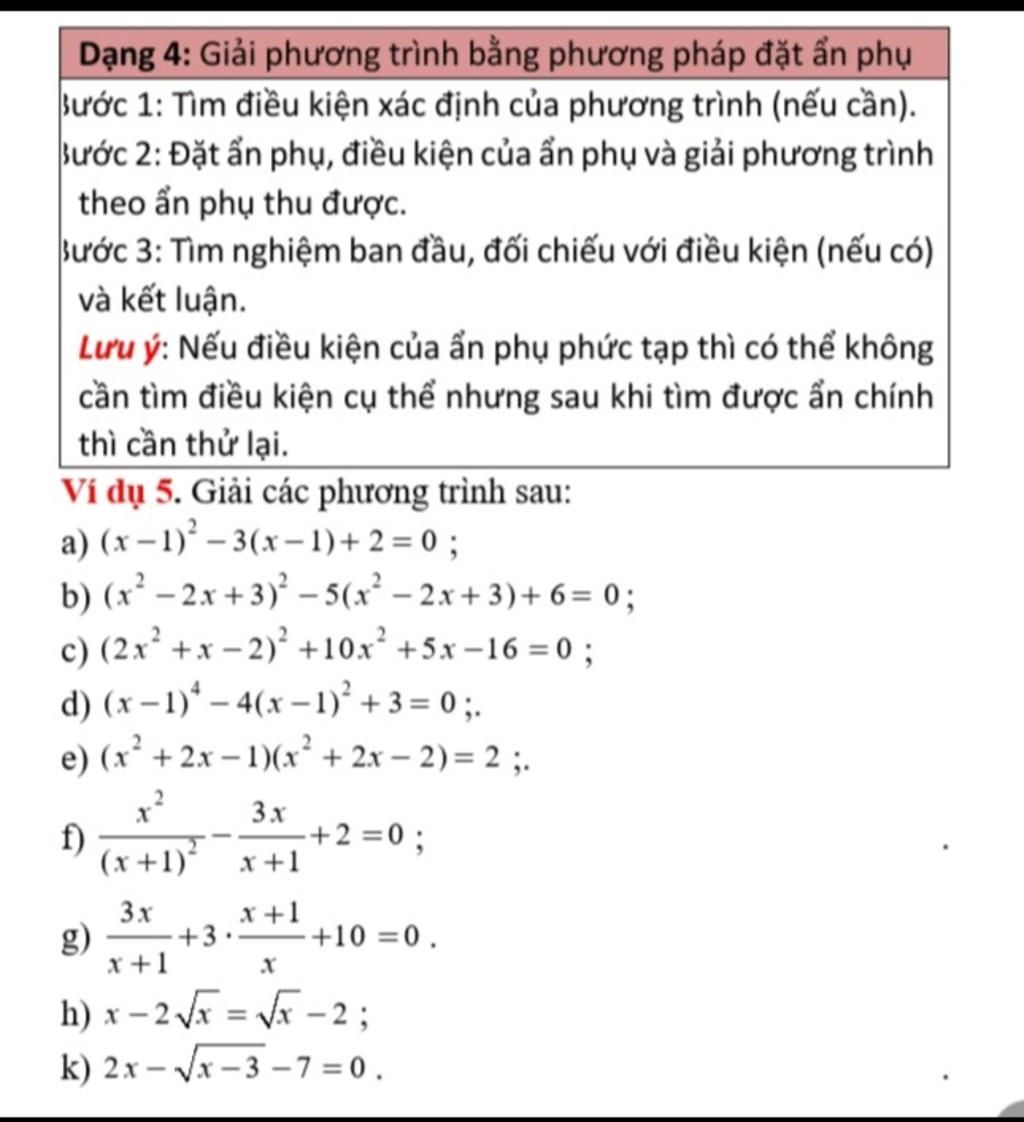 Dạng 4: Giải phương trình bằng phương pháp đặt ẩn phụ