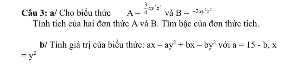 ` b) ` Ta có biểu thức : ` ax - ay^2 + bx - by^2 `
