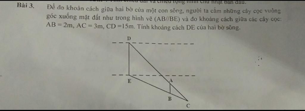 Vậy khoảng cách `2` bờ sông là `DE = 10 m`