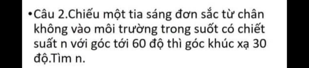 $n=\dfrac{\sin i}{\operatorname{s}\text{inr}}=\dfrac{\sin 60}{\sin 30}=\sqrt{3}$