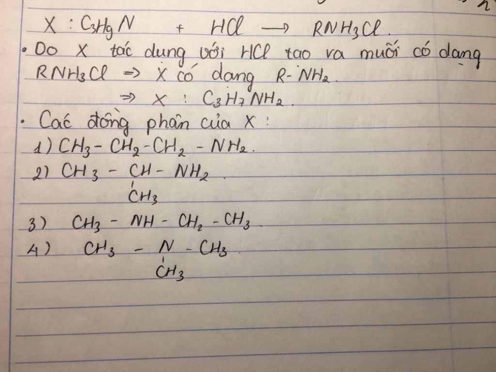 Amin X tác dụng HCl tạo muối RNH3Cl