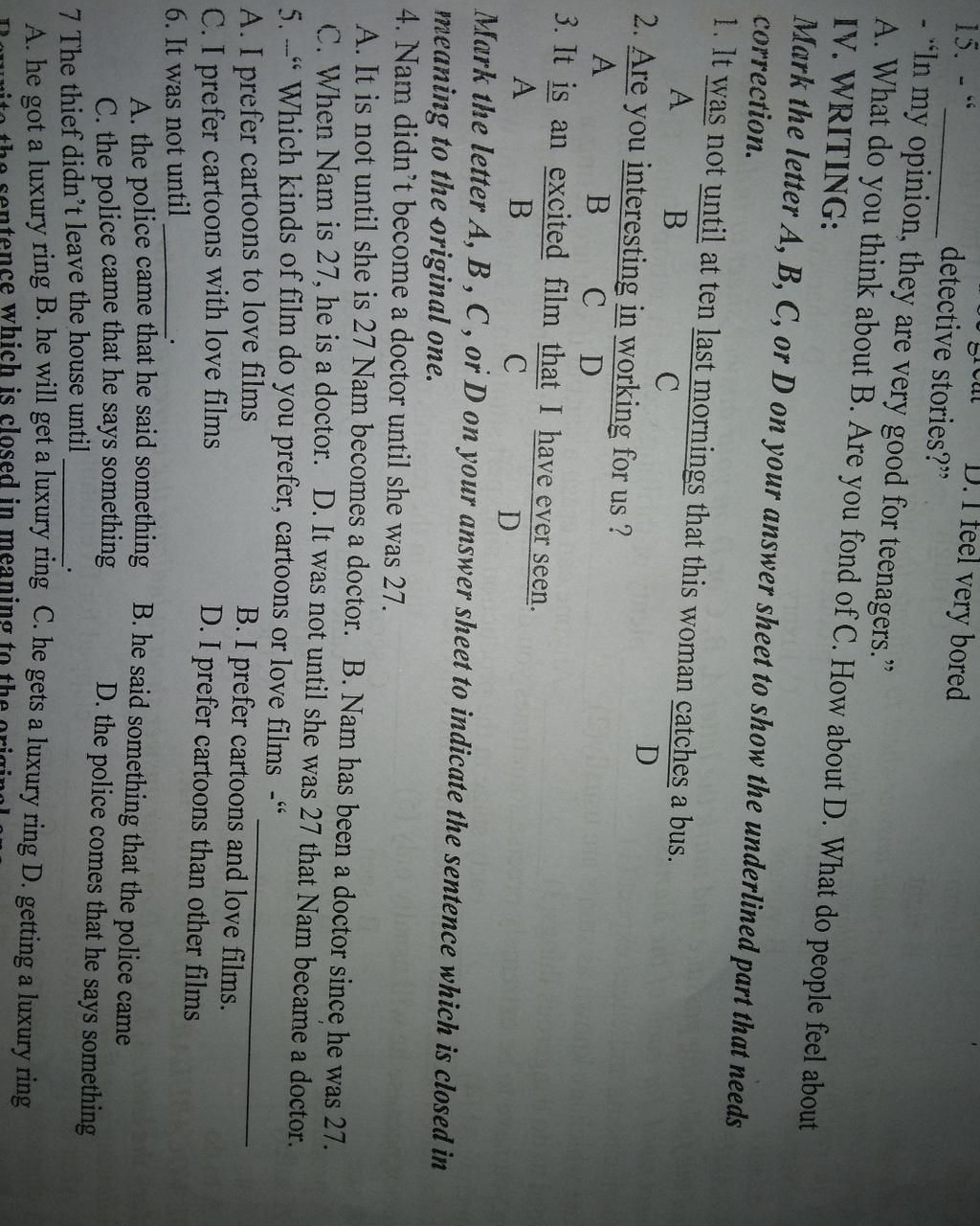 Mark the letter A, B, C, or D on your answer sheet to show the underlined part that ...