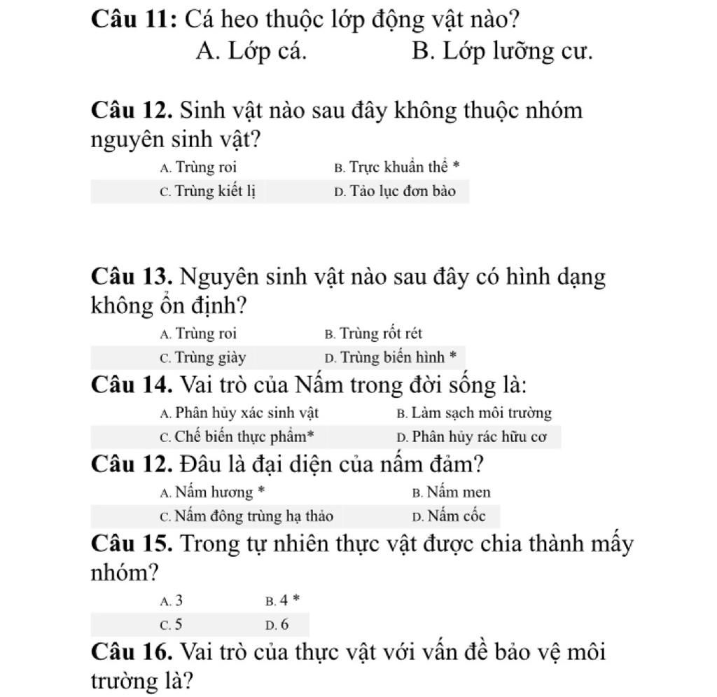 - Trong các sinh vật trên, trùng roi, trùng kiết lị, tảo lục đơn bào là các sinh vật thuộc nhóm nguyên sinh vật.