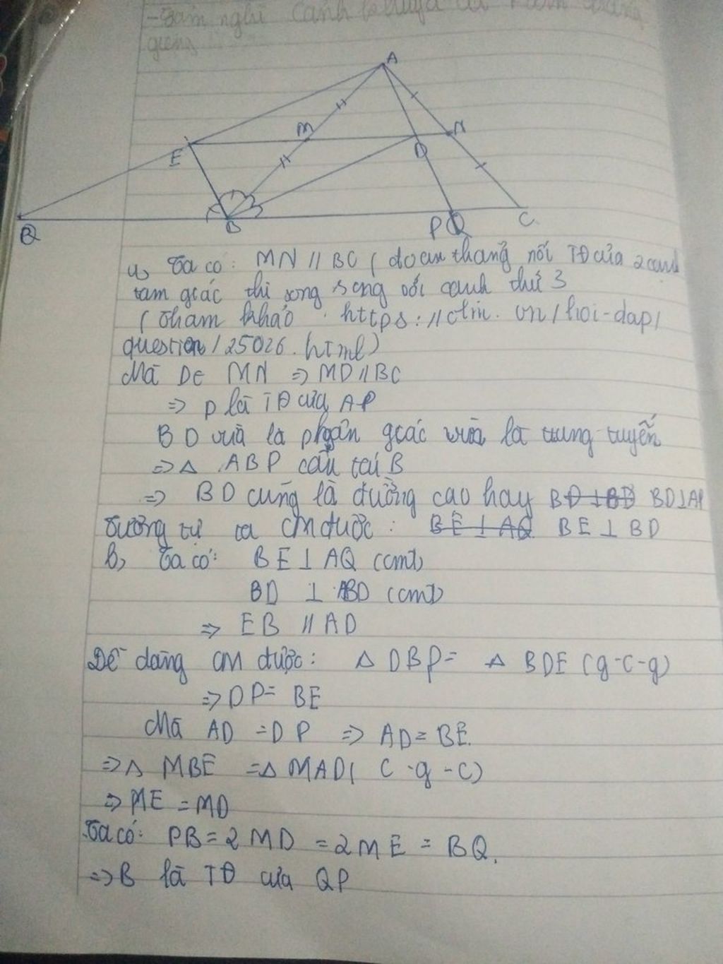 b) Từ dữ liệu ở câu a -> chứng minh được AQ // BD.