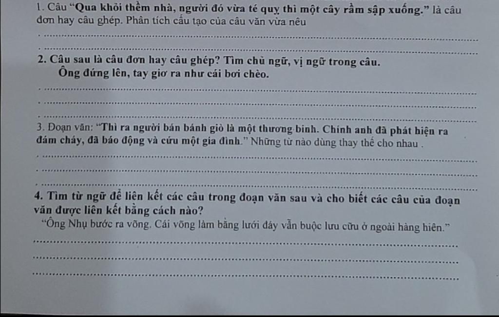 ⇒ Câu "Qua khỏi thềm nhà, người đó vừa té quỵ,thì một cây rầm sập xuống là câu ghép