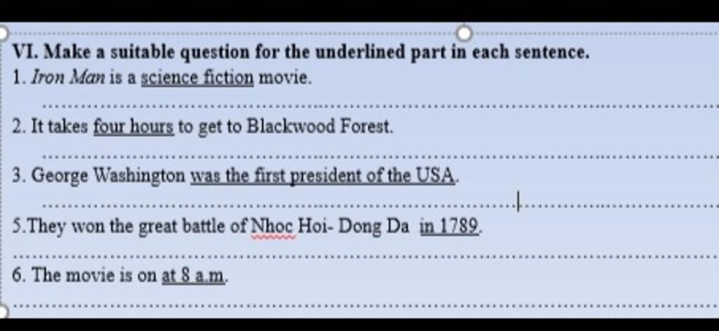 ` *** ` Dạng câu hỏi : WH `-` word `+` (TĐT)do `/` does `+` S `+` V`-`inf `+` O `?`