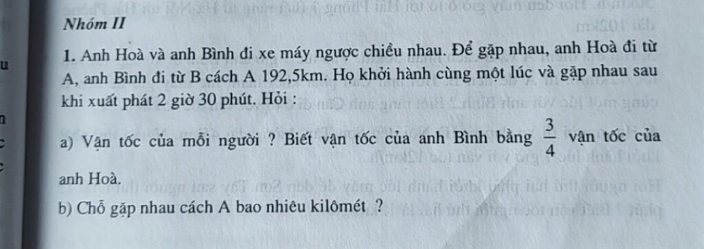 `text {Đáp số : a) V anh Hòa : 44 km/giờ ; V anh Bình : 33 km/giờ }`