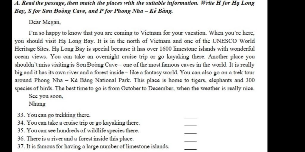 37.H (Hạ Long Bay is special because it has over 1600 limestone islands with wonderful ocean views.)