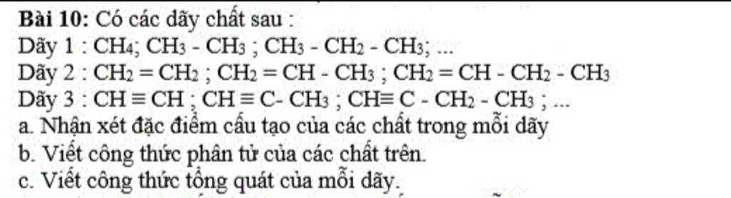 \text{ Dãy 3}:{C_2}{H_2},{C_3}{H_4},{C_4}{H_6}\\