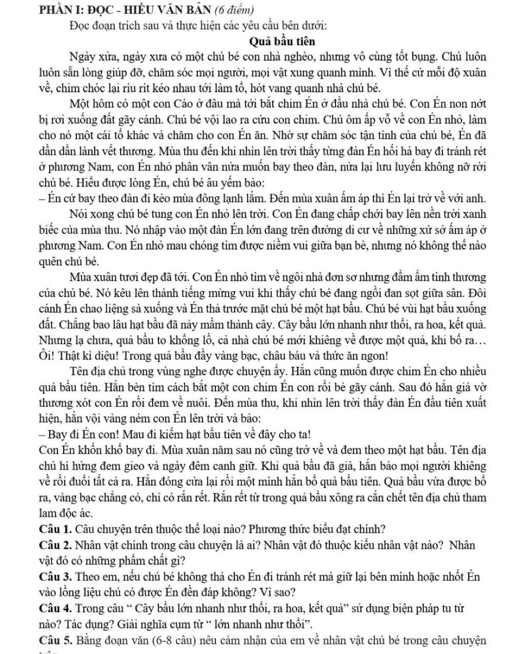 PHẦN I: ĐỌC - HIỂU VĂN BẢN (6 điểm)