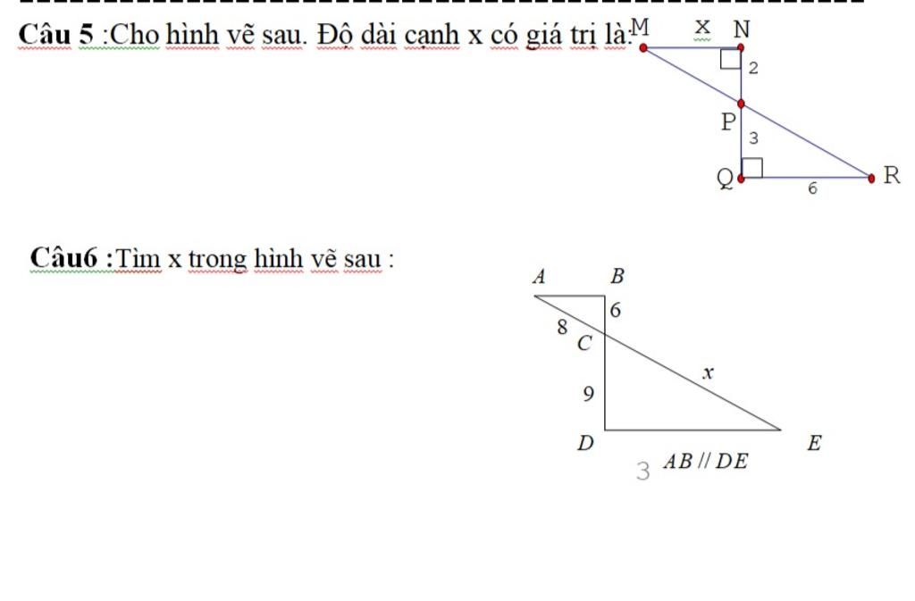 `⇒` `(x)/(6)=2/3⇒x=(6.2)/3=4cm`