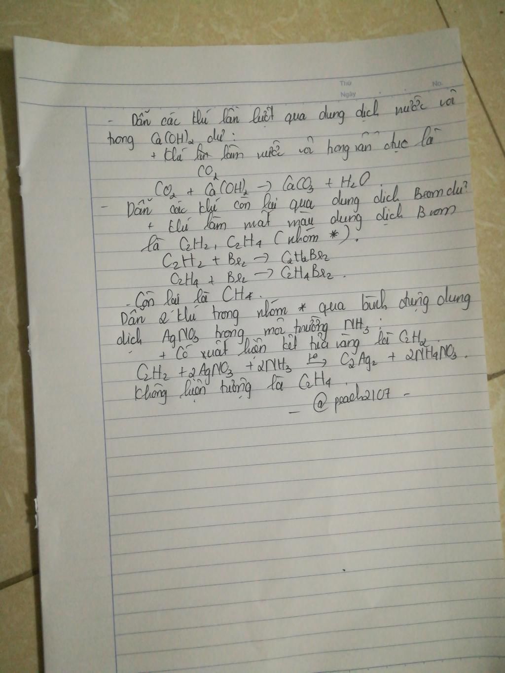 Dẫn C2H2, C2H4 vào Ag2O ở trong dd NH3