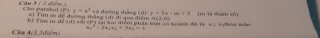 Để `(d)` cắt `(P)` tại hai điểm phân biệt thì phương trình (1) phải có 2 nghiệm phân biệt