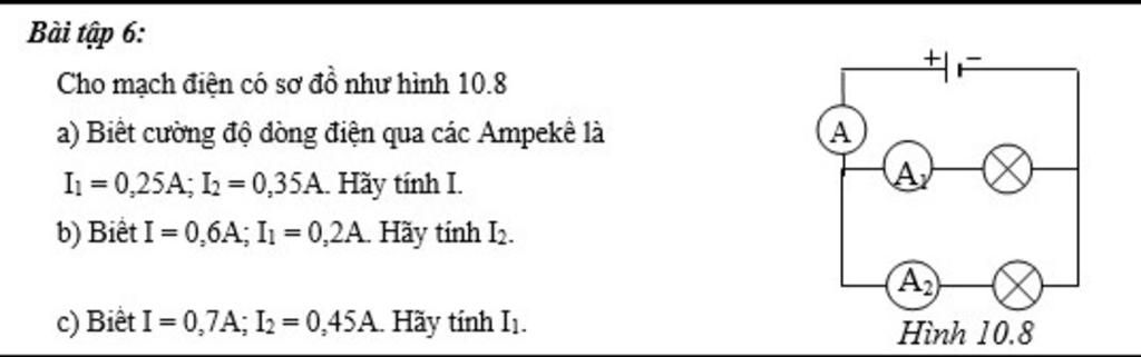 \(I = {I_1} + {I_2} = 0,25 + 0,35 = 0,6A\)