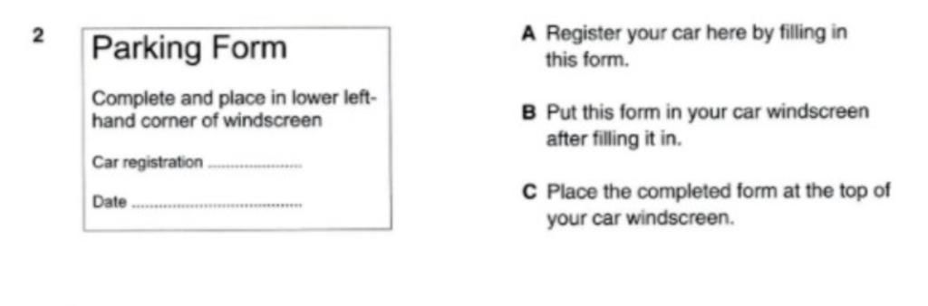 What this statement says is: B. Put this form in your car windscreen after filling it.