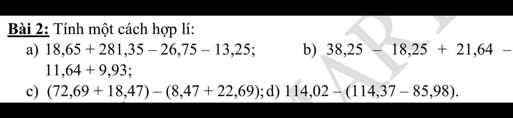 `a) 18,65 + 281,35 - 26,75 - 13,25`