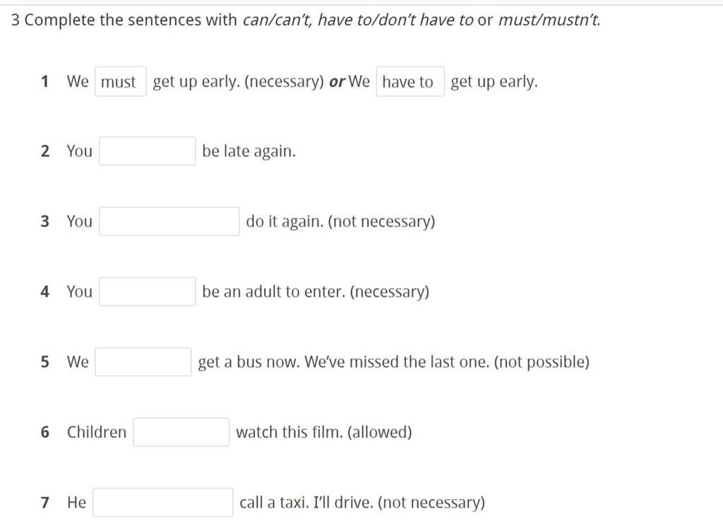*Giải thích:Bạn không được đi muộn nữa.Chỉ sự bắt buộc nên ta dùng mustn't