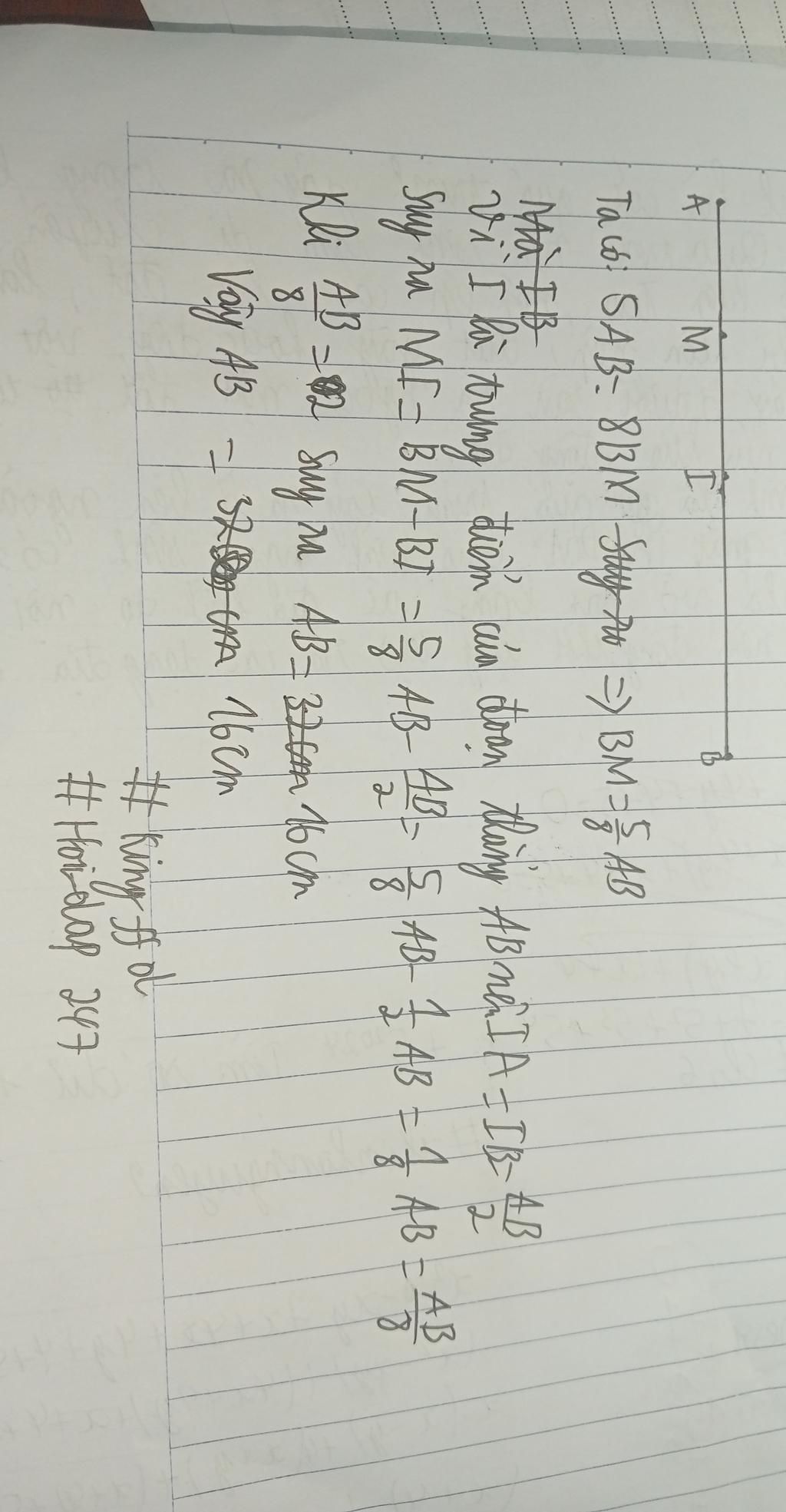 Ta có : 5AB = 8BM ⇒ $\frac{AB}{BM}$ = $\frac{8}{5}$