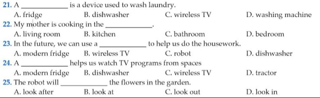 `=>` có wash laundry (giặt đồ áo bẩn) `->` D phù hợp nhất