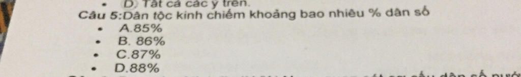 Dân tộc kinh chiếm khoảng bao nhiêu phần trăm dân số? A.85 phần trăm B.86 phần trăm C.87 phần trăm D.88 phần trăm