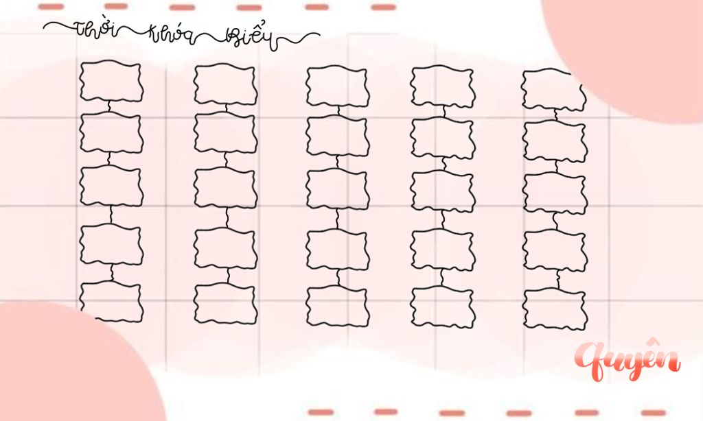 - Vẽ 5 hàng, mỗi hàng 4 dòng tượng trưng cho T2 - T6 và mỗi ngày 4 tiết.