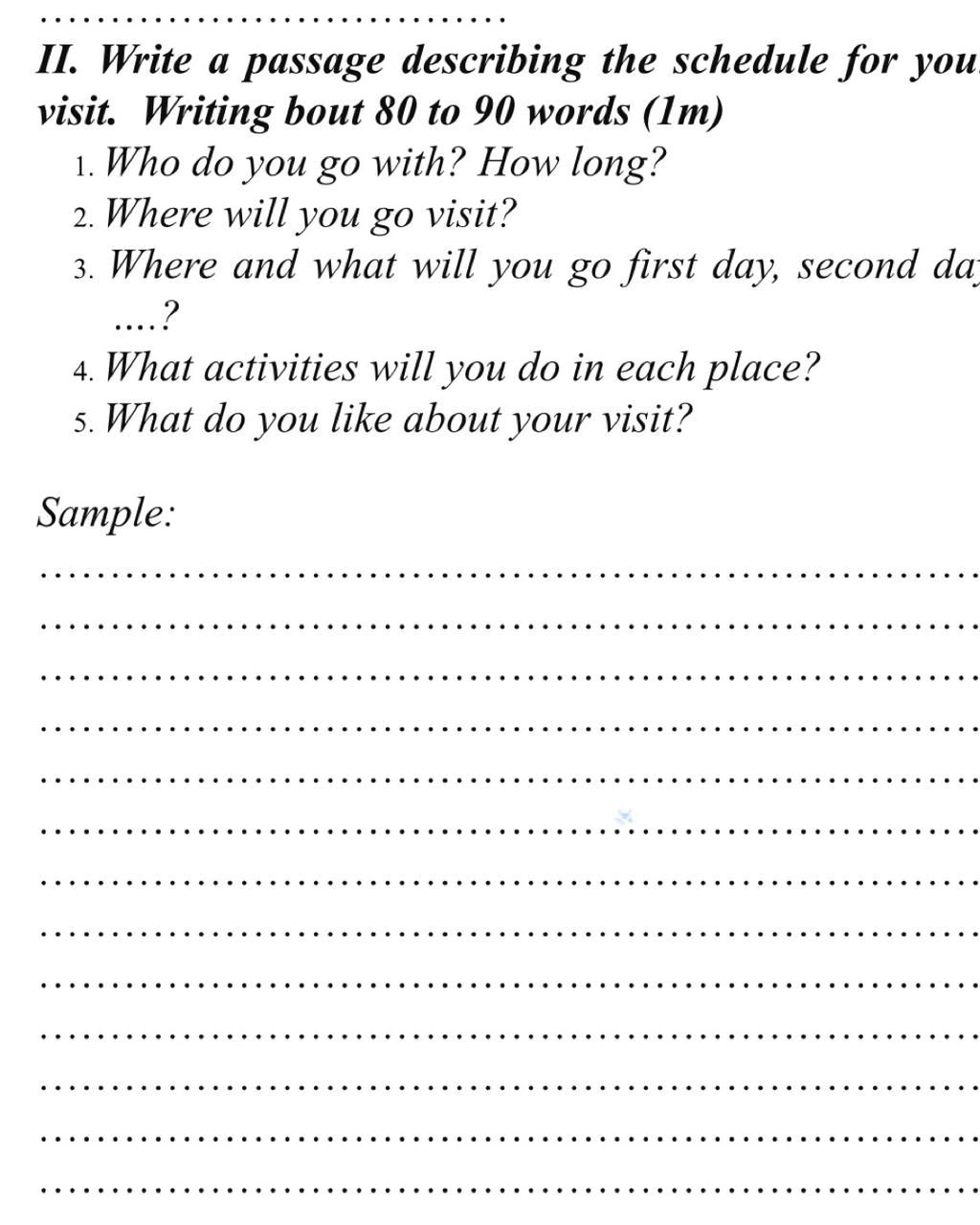 visit. Writing bout 80 to 90 words (1m)